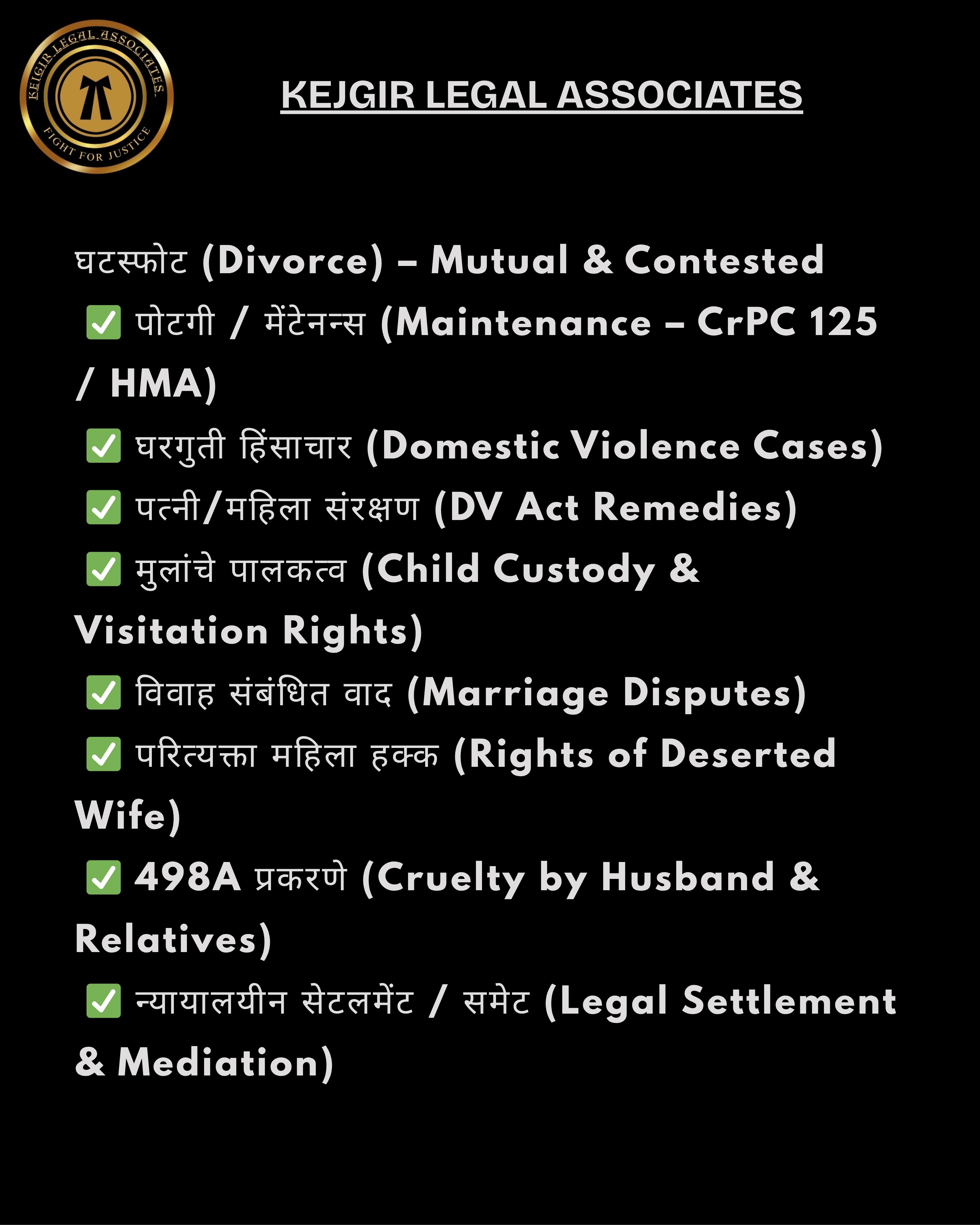 Pune मधील अनुभवी Family Lawyer कडून Divorce, Domestic Violence, Maintenance, Child Custody व Marriage Disputes साठी कायदेशीर मदत उपलब्ध.